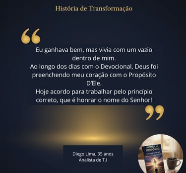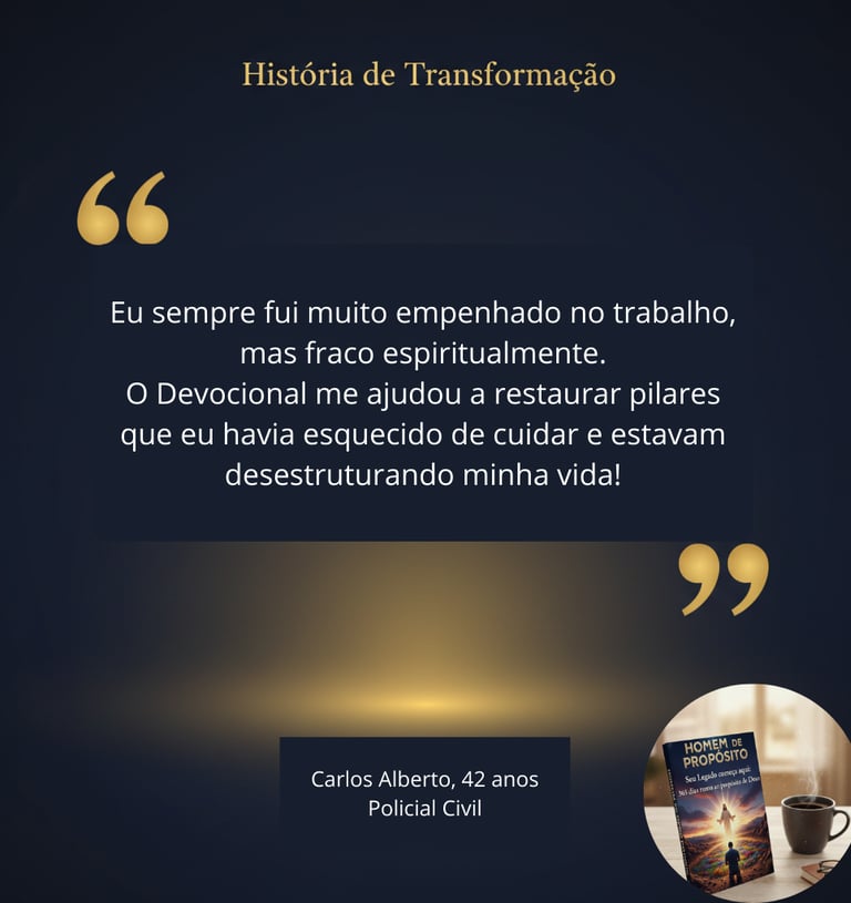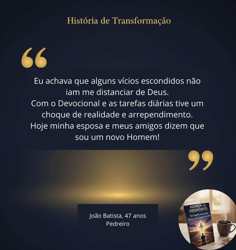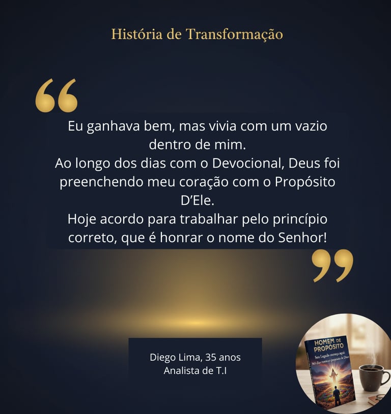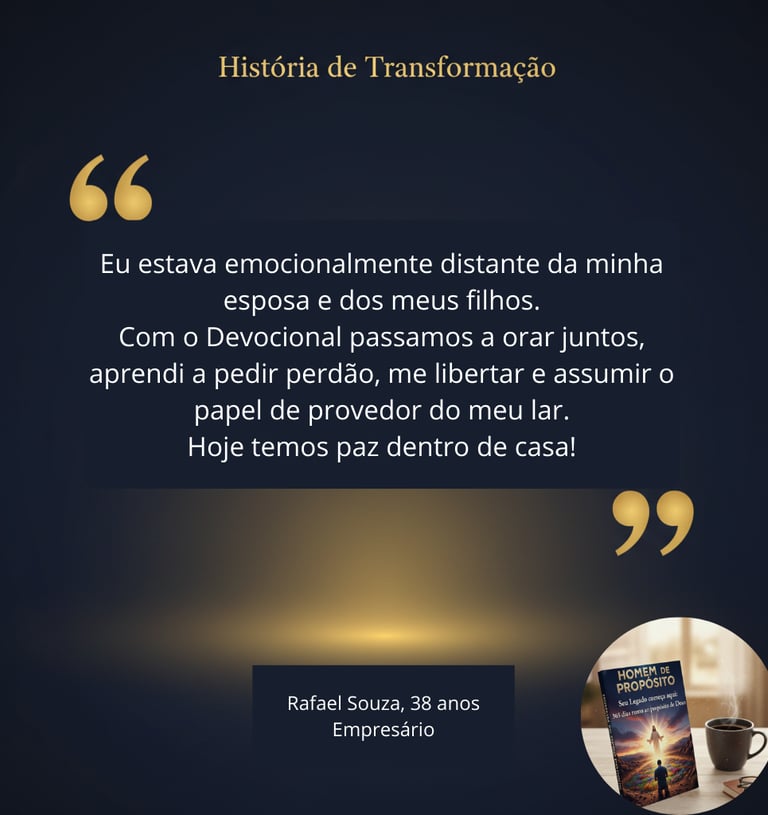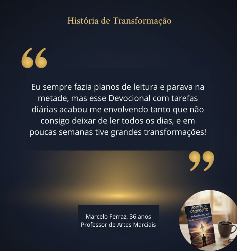 O Devocional "Homem de Propósito" é o seu manual de 365 dias para a AÇÃO e TRANSFORMAÇÃO.